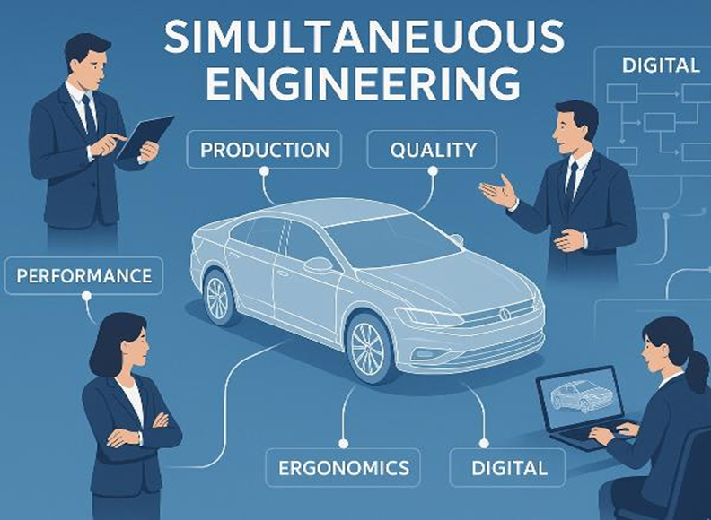 Innovating the automotive design and development phase through AI learning and inference, presenting a new paradigm for simultaneous engineering and DCS simulation.